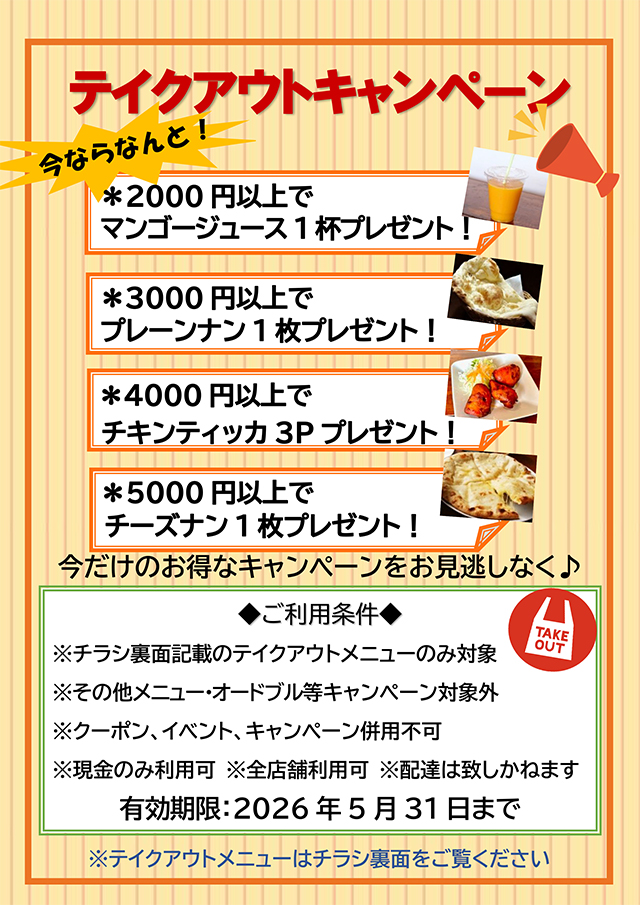 2026/4/20よりテイクアウトキャンペーンがスタート!