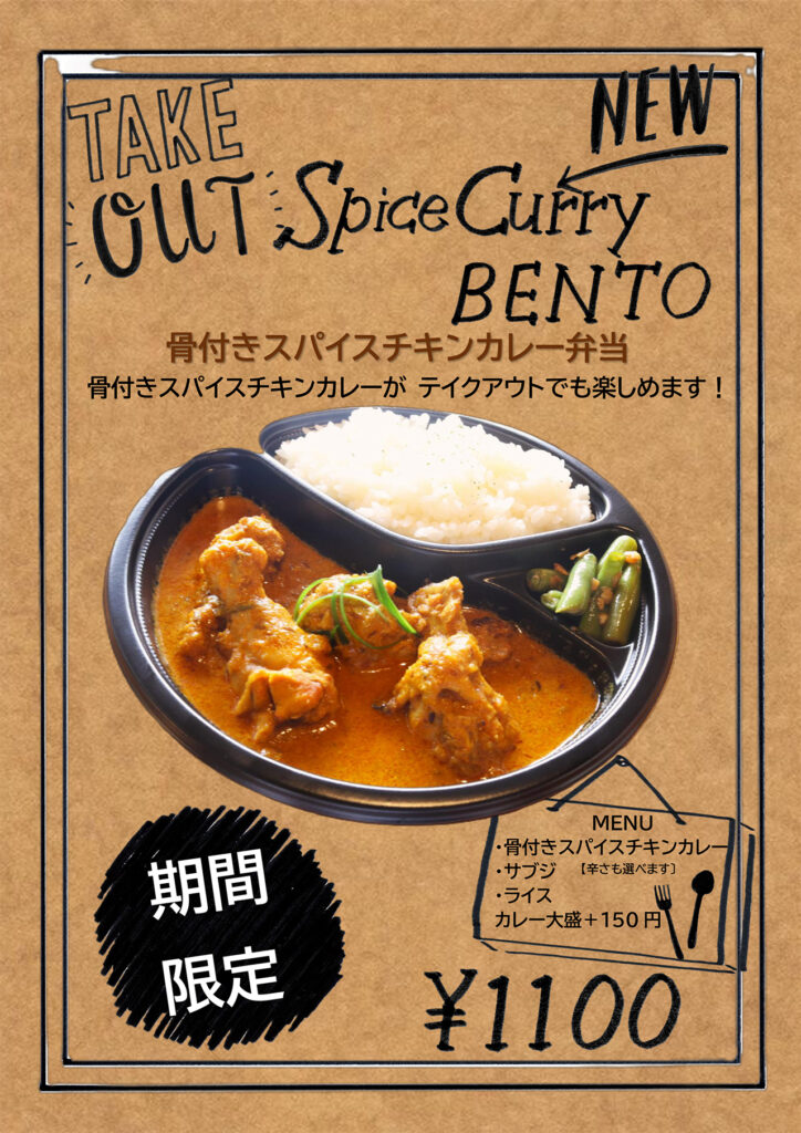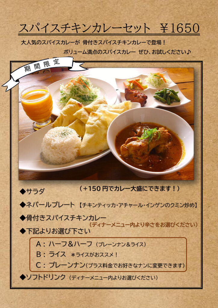 3. 桑名店・四日市店限定!スパイスチキンカレーランチ/セット、テイクアウト